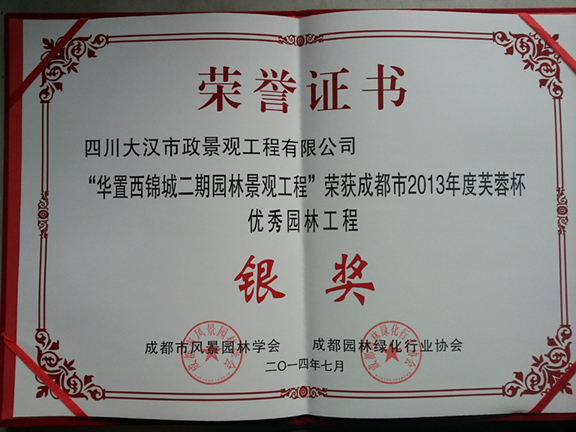熱烈慶祝我司獲得“芙蓉杯”優(yōu)秀園林工程