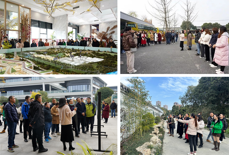 考察團(tuán)一行先后對(duì)2024年成都世園會(huì)郫都分會(huì)場(chǎng)主場(chǎng)館——春天花樂(lè)園、溫江分會(huì)場(chǎng)主場(chǎng)館——川派盆景博覽園進(jìn)行了參觀。在春天花樂(lè)園,考察團(tuán)一行認(rèn)真聽(tīng)取了工作人員對(duì)2024年世園會(huì)郫都分會(huì)場(chǎng)的規(guī)劃建設(shè)情況介紹,了解了郫都分會(huì)場(chǎng)“一心、一片、一環(huán)、十二園、百點(diǎn)”空間布局中最重要的花卉產(chǎn)業(yè)核心項(xiàng)目及春天花樂(lè)園全力推進(jìn)世園會(huì)郫都分會(huì)場(chǎng)主展場(chǎng)建設(shè)工作情況,并步行分別對(duì)春肆花園中心、大眼花園、花卉苗木交易區(qū)進(jìn)行考察參觀學(xué)習(xí)。隨后,考察團(tuán)一行驅(qū)車前往2024年成都世園會(huì)溫江分會(huì)場(chǎng)主場(chǎng)館——川派盆景博覽園。該會(huì)場(chǎng)圍繞突出川派盆景特色主要布局“一園一館一軸”, 其中重點(diǎn)打造的“一館”,坐落于溫江萬(wàn)春鎮(zhèn)黃石社區(qū),占地約300余畝,是一座集西蜀園林、川西民居、盆景博覽、盆景生產(chǎn)等于一體的川派盆景博覽園,可以滿足盆景游覽序列的展示展現(xiàn)、康養(yǎng)體驗(yàn)、古典園林空間展示等功能需求。在園區(qū)工作人員的指引和帶領(lǐng)下,大家參觀了川派盆景長(zhǎng)廊、松石長(zhǎng)廊、川派精品盆景館、盆景大師館、知音館和川蜀文化長(zhǎng)廊等分館。